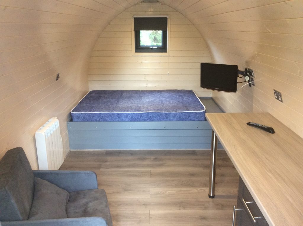 Holiday in style whatever the weather with our new glamping pod – a superb, warm, quiet and cosy space. Available all year round, our well insulated glamping pods with thermostatically controlled heating means you stay warm, even when the weather outside isn’t!